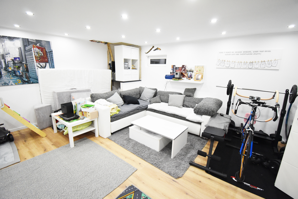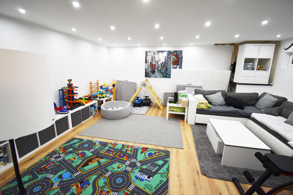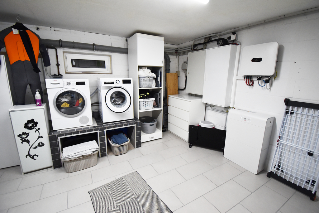 Im Kellergeschoss befinden sich 2 größere Kellerräume, von denen einer als Waschküche und Technikraum der PV-Anlage, der andere als Hobbykeller genutzt wird. Weiterhin steht hier im Keller noch ein kleinerer Vorratsraum zur Verfügung.